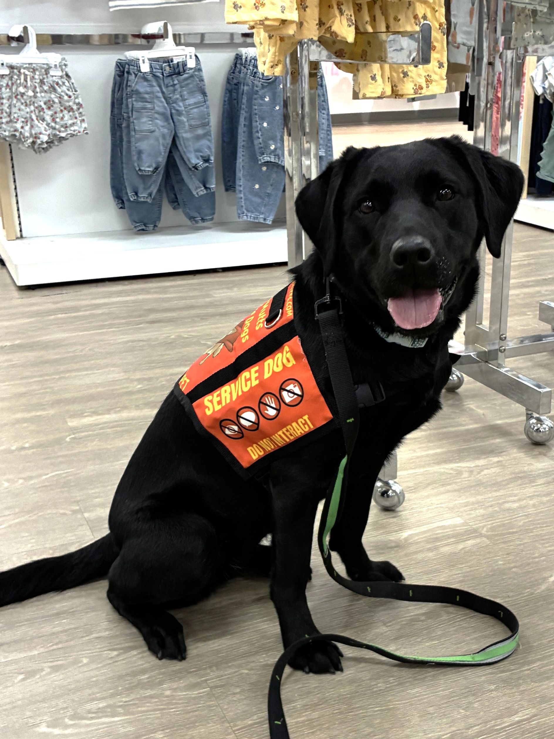 Service Dog in Training Scout is a black Labrador Retriever. She has already had advanced training from Alert Dog Services, LLC in San Antonio, Texas.